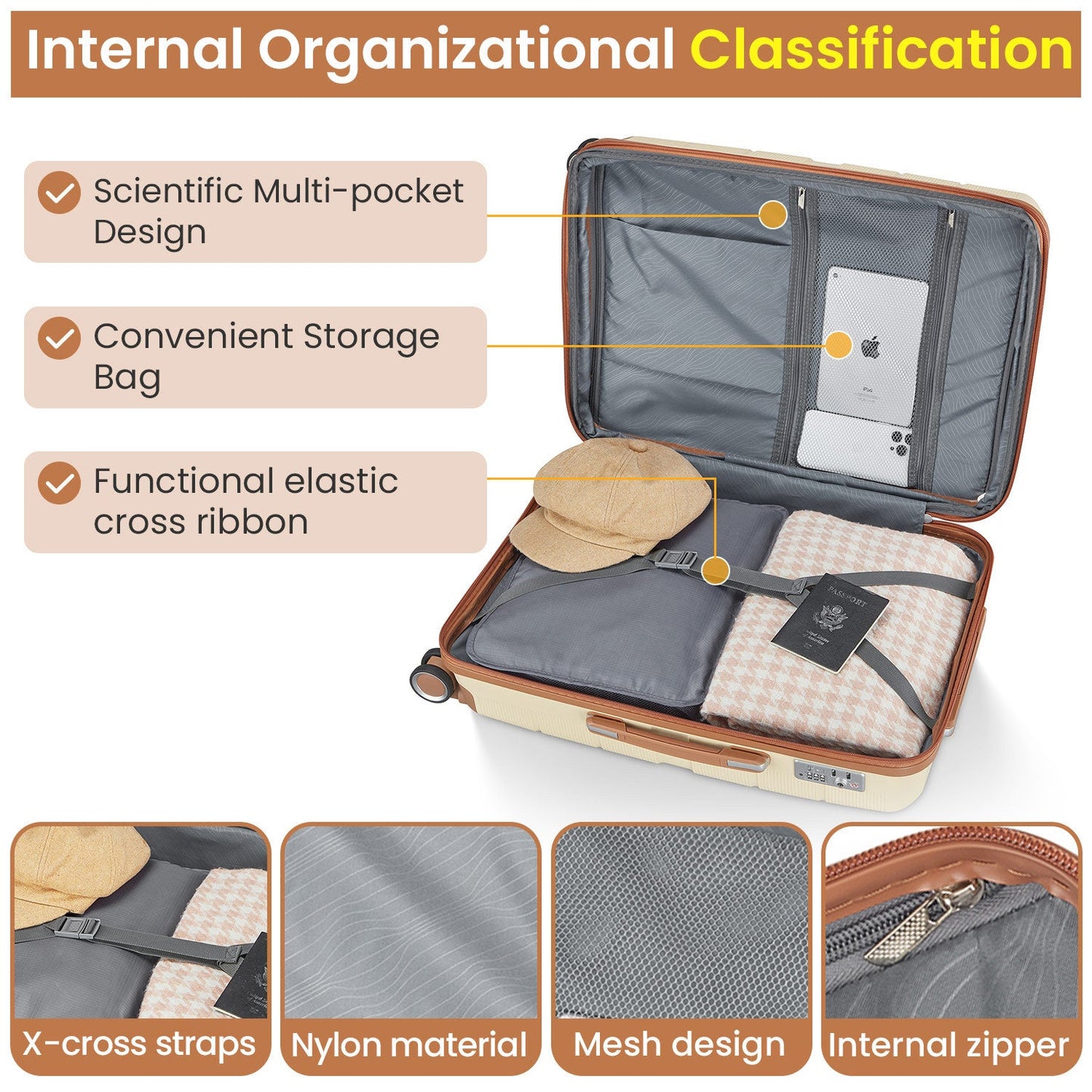 - Organized and Spacious Interior. The fully lined luggage includes a handy divider and an interior organizer with zippered pocket for smaller items.