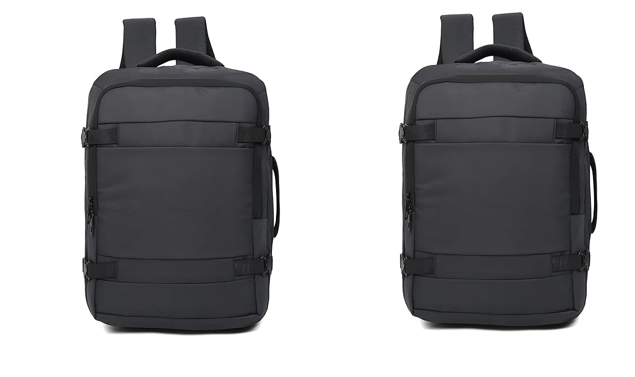 45 Ltrs Expandable Travel Laptop Backpack-CHARCOAL BLACK Pack of 2