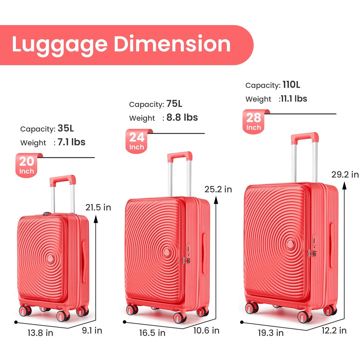 - Packing Include: Luggage Sets 3 Piece(20/24/28) and 3PCS Clear PVC Suitcase Cover to Protective Luggage.