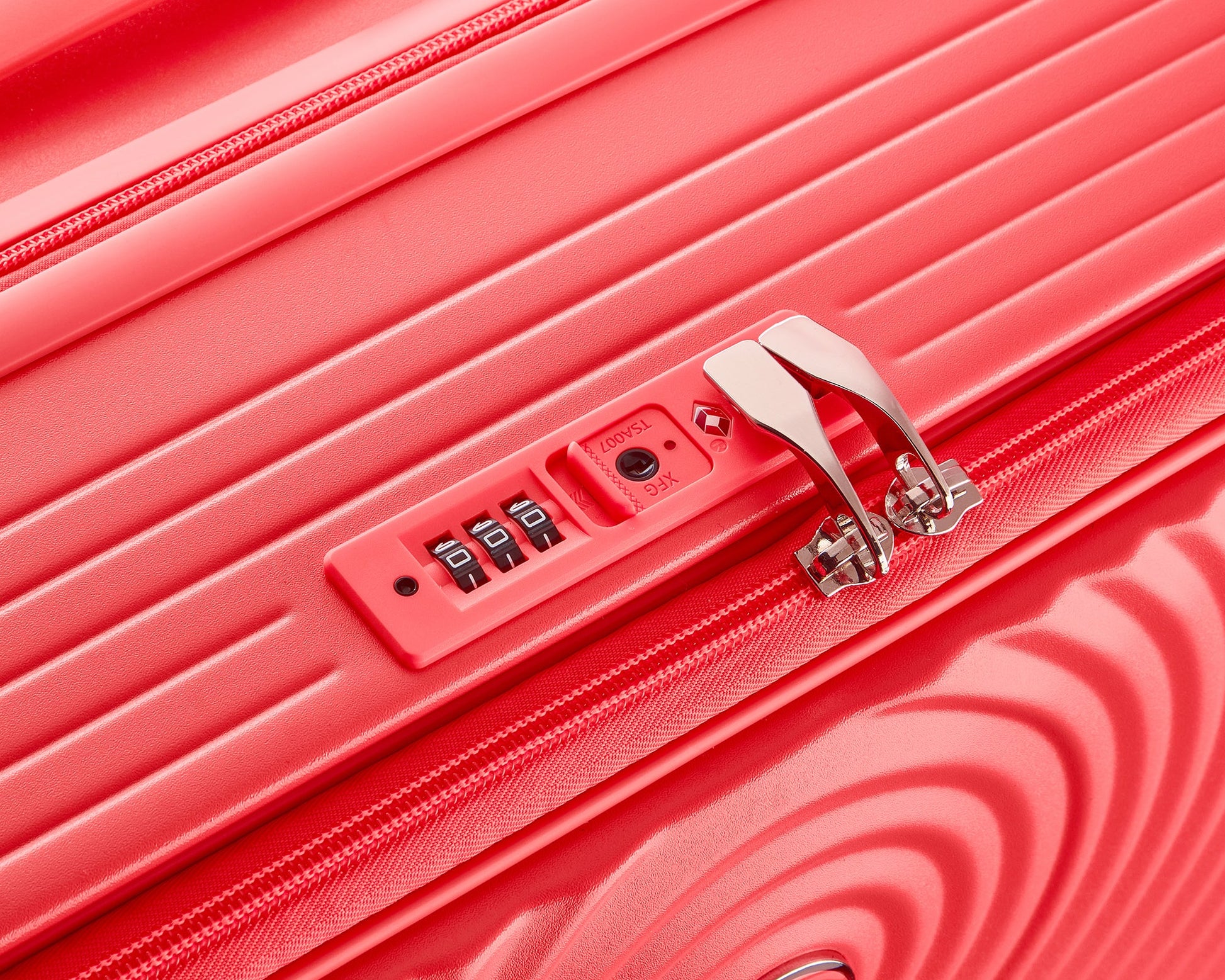- RECESSED TSA COMBINATION LOCK provides security during international travel.