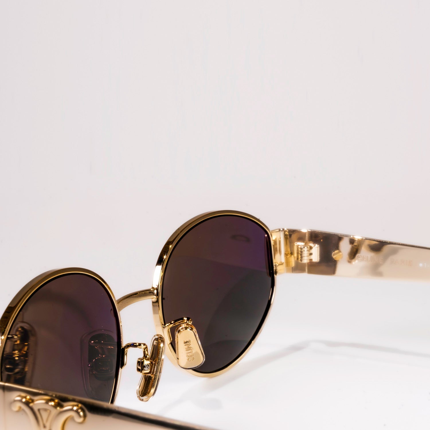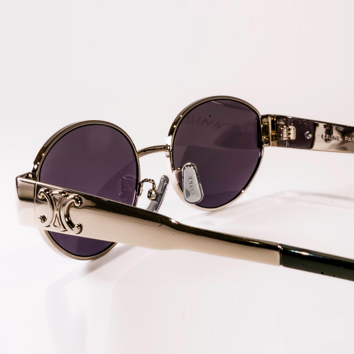 Displayed on the temples of these sunglasses, the Triomphe emblem is inspired by the chain-link motifs surrounding the Arc de Triomphe in Paris. Made with silver-toned frames and smoked tinted lenses, these Celine Eyewear oval sunglasses are a must-have.