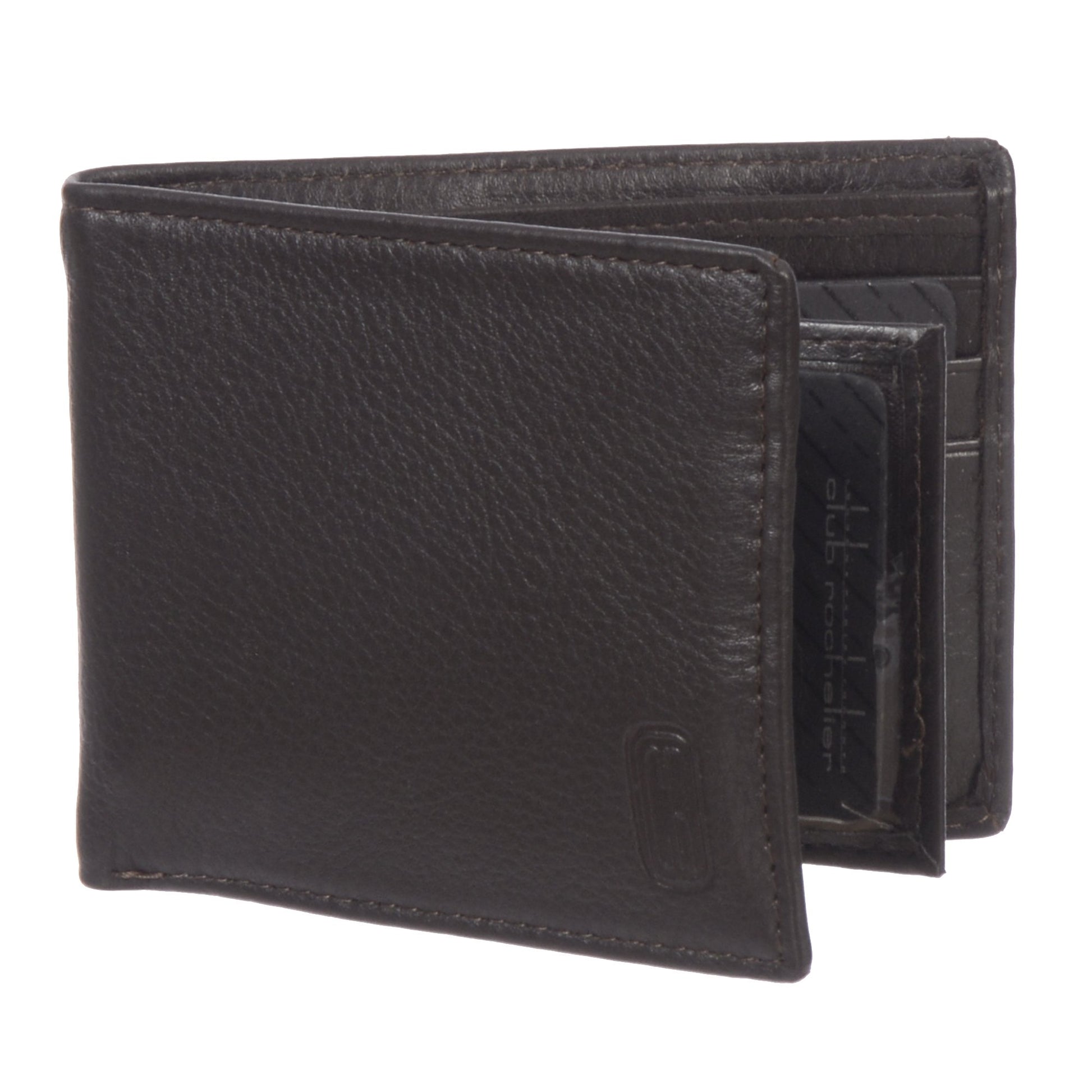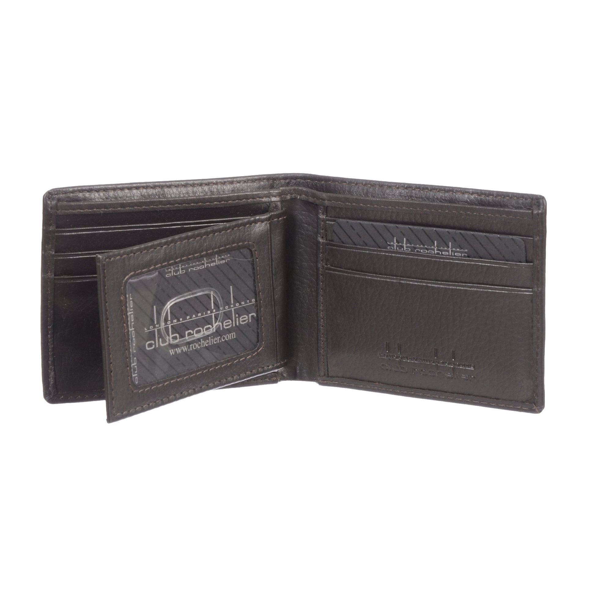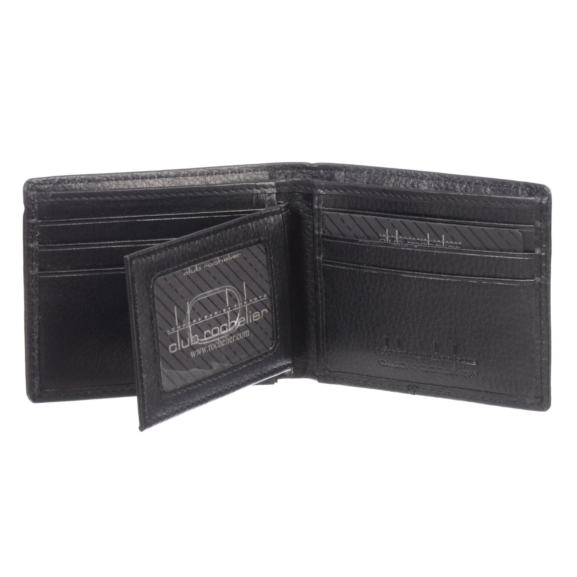 Dapper and dependable this Club Rochelier Leather Mens Slimfold Wallet is designed to stash everything you can't leave home without. For your convenience, the center passcase features 2 easy access ID windows and there is a divider in the cash compartment for multiple currency.