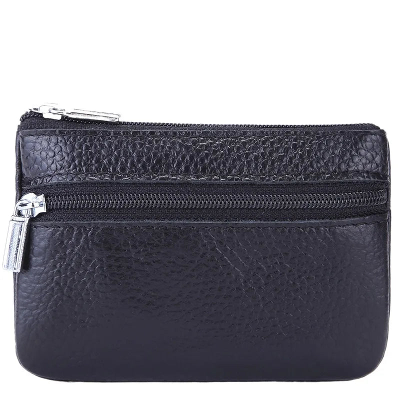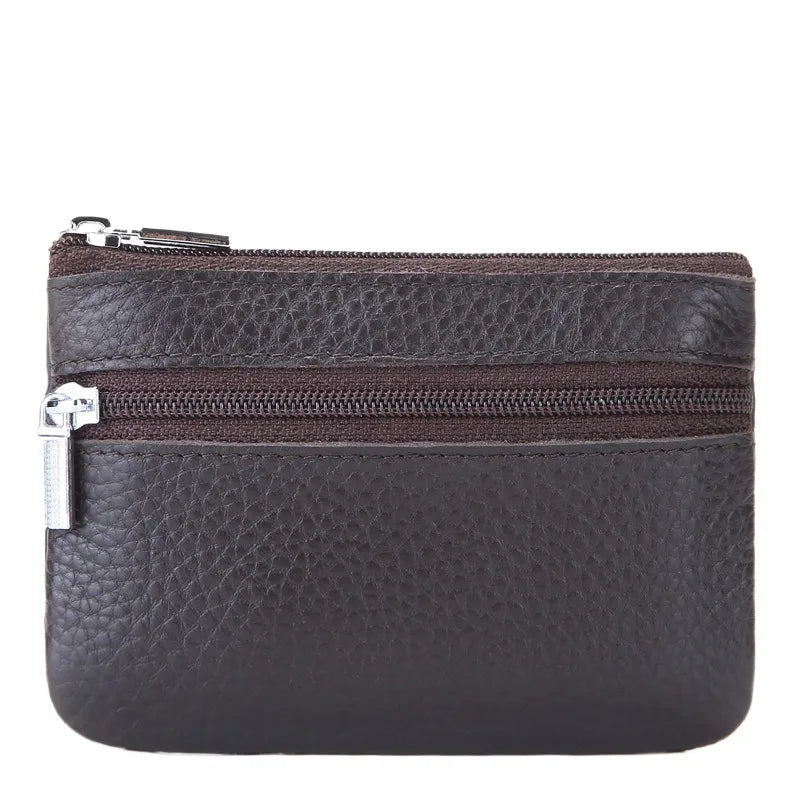 Leather 2 Zipper Coin Purse Wallet With Card Slots, Coin Organizer,