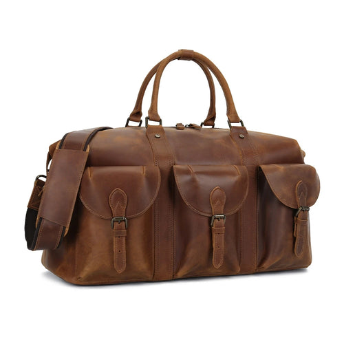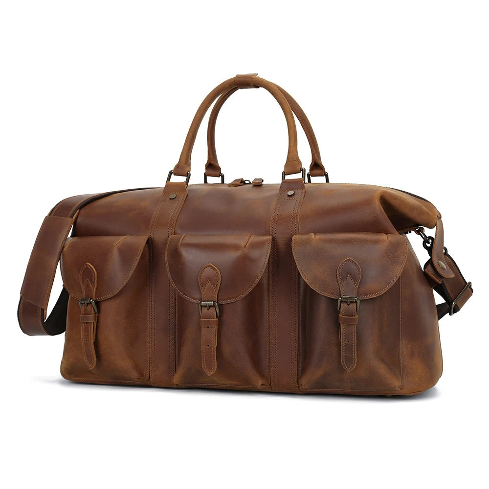 Luxury Travel Duffle Men Women Crazy Horse Leather 15.6 Laptop Handbag