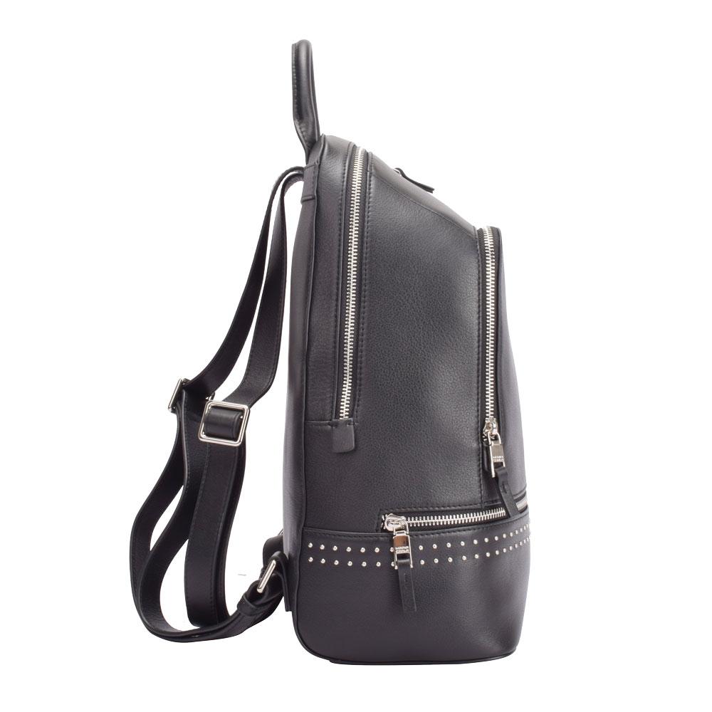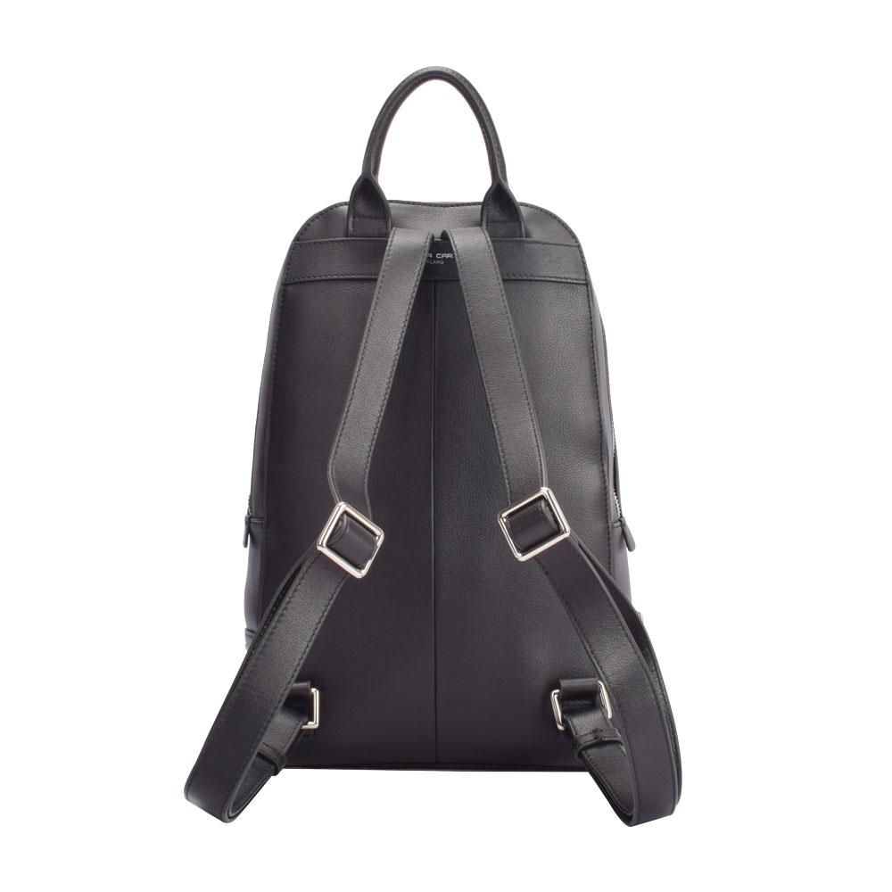 Smooth leather bag with short handle and adjustable backpack shoulder straps. Main compartment with zip closure.